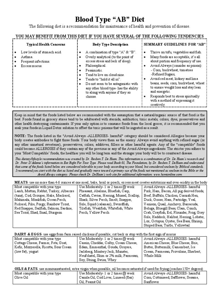 Eat Right For Your Blood Type Ab : For many people it made a big difference to the way they feel, but it's also.